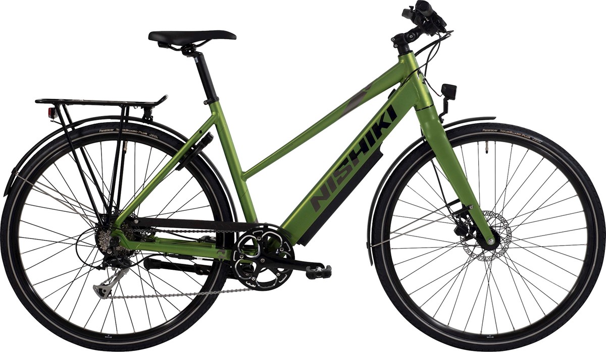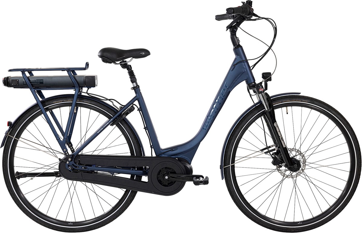 Denna cykel har ett pakethållarbatteri på 400 wh som du kan plocka ur cykeln och ta med dig. Din återförsäljare kan hjälpa dig att låsa batteriet så att det bara fungerar med din cykel och ställa in cykelns körstil så att den driver på ett sätt som passar din cykling. Allt är snyggt inbyggt i en 7-växlad damcykel av modernt snitt, med lågt insteg, fotbroms bak och skivbroms fram. Det ingår också en styrlagfjäder som gör att styret kan hållas upprätt vid parkering även om korgen är fullastad. Displayen på styret håller dig uppdaterad när du och cykelns batteri sitter i pakethållaren, som dessutom har en smart funktion där du enkelt klickar av och på en väska eller korg. Cykelkorg med anpassad tygväska framtill ingår, liksom stöd, godkänt ramlås och belysning.